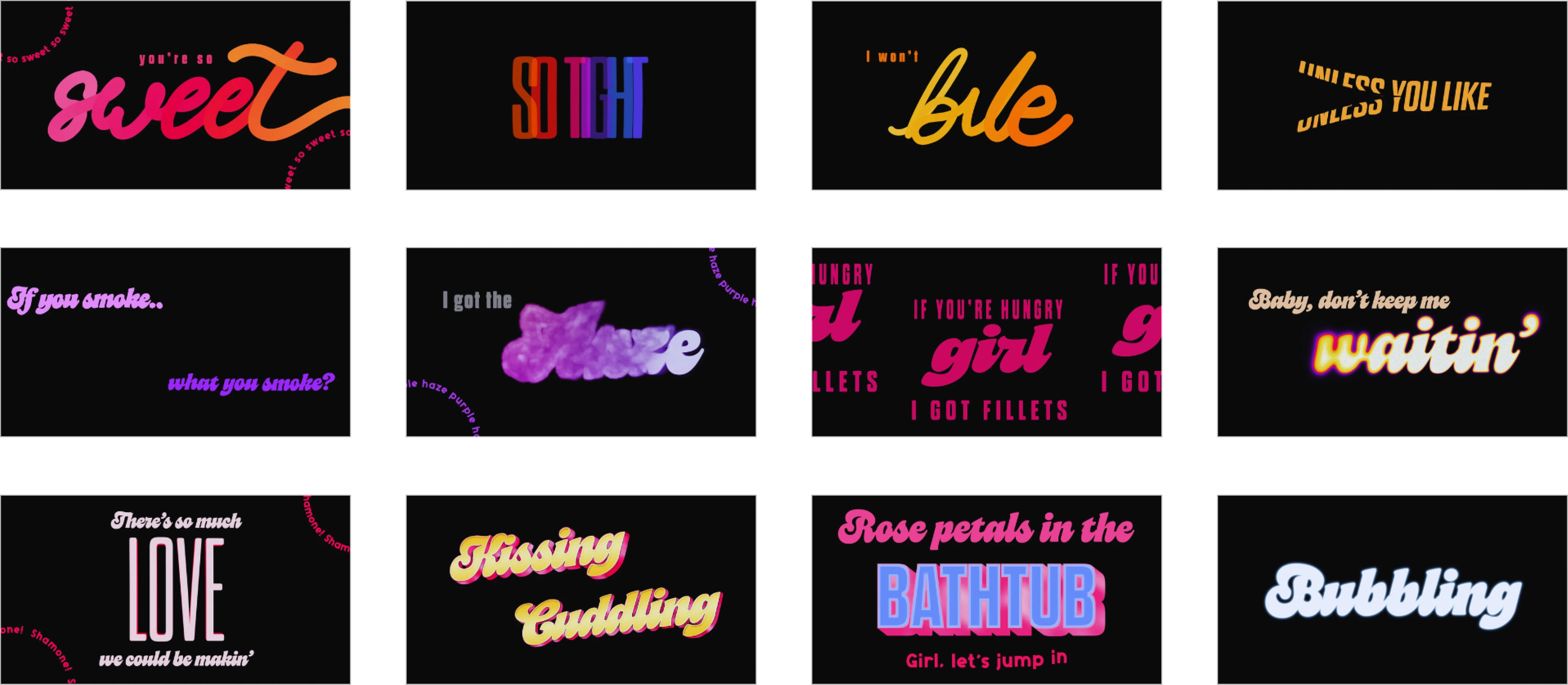 Hard-to-visualize words (e.g., "tight," "sweet") were tricky to animate.Balancing Handwritten & Stylized Type